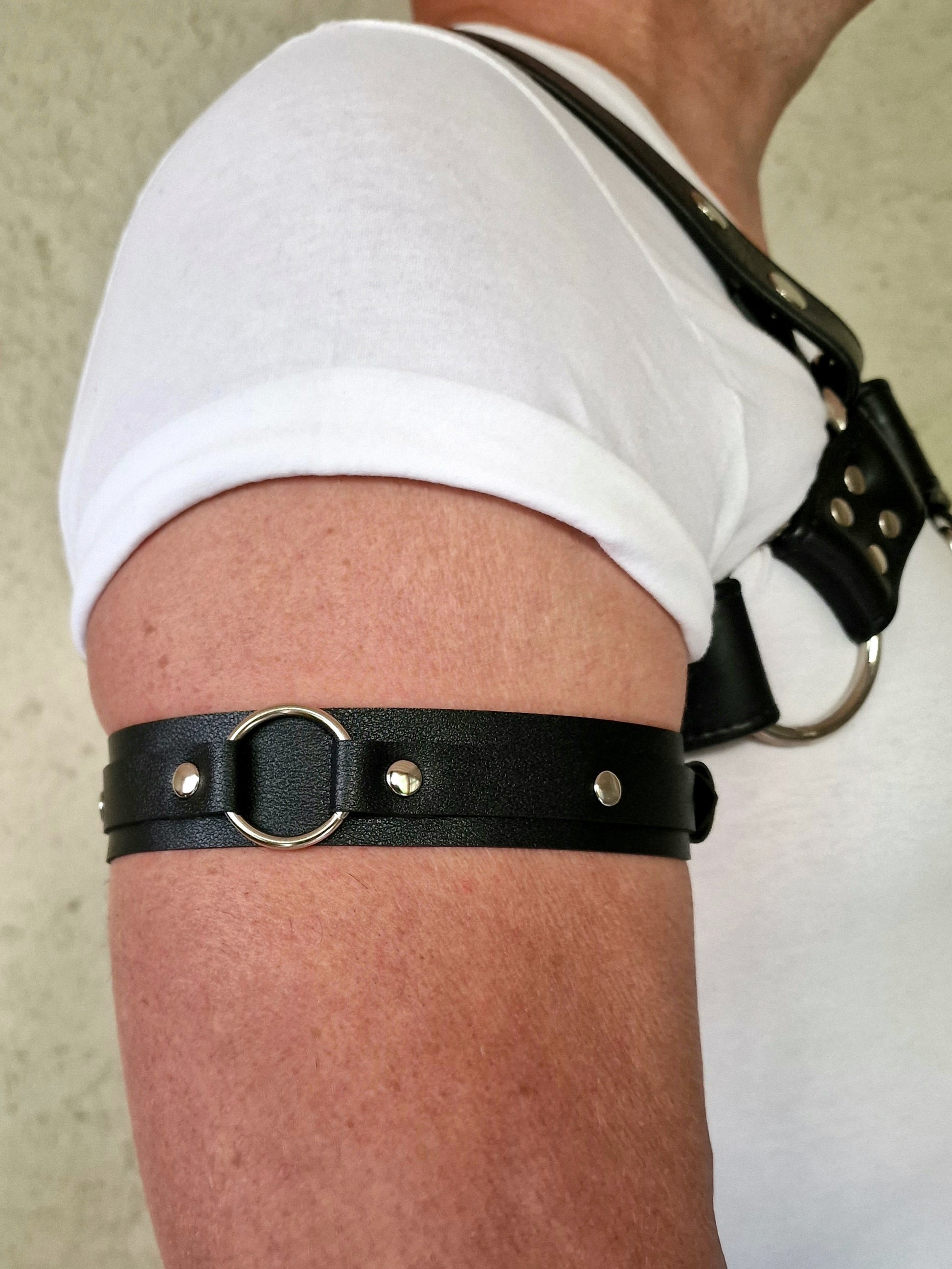 Stylische und sexy Bizepsbänder oder Armbänder. Diese werden aus veganem oder PU-Leder hergestellt. Sie passen gut in den Club, bei SLM oder wenn Sie zu einer Dekadance-Party gehen.