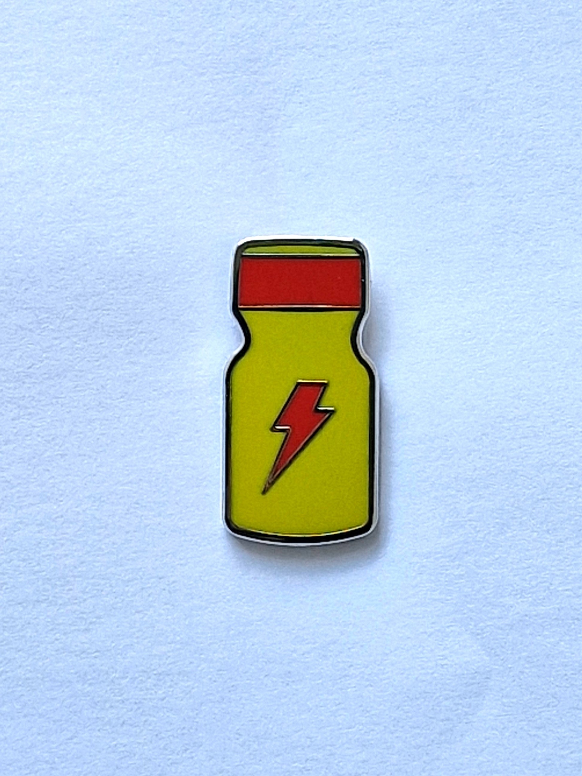 Stilvolle Pins in Form einer Poppers-Flasche. Wenn Sie gesehen werden möchten, ist dies die perfekte Brosche oder Anstecknadel. Eine lustige, lustige und einzigartige Anstecknadel von Dickfashion