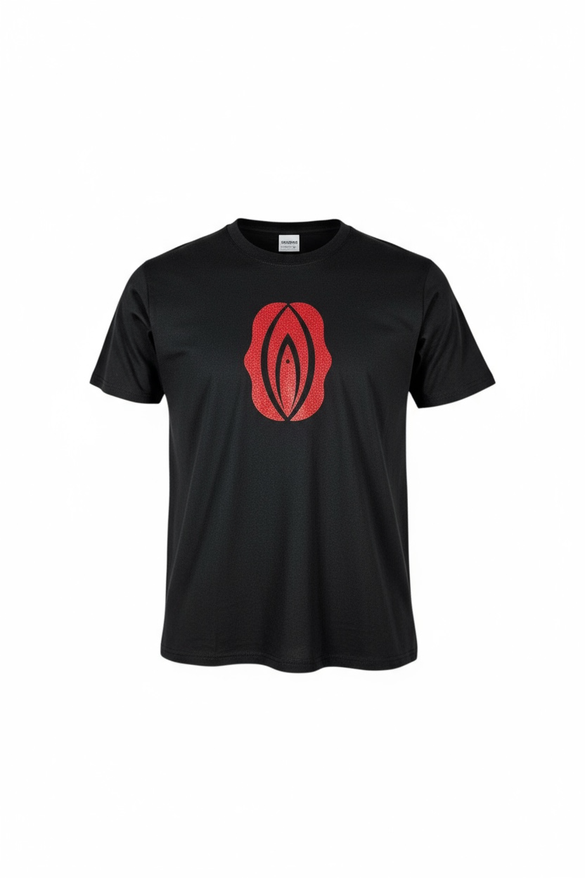 T-shirt i svart med en glittrig pussy i rött. Tröjan är havy cotton, 240 gsm. Alla Dickfashions t-shirts är tillverade i mycket hög kvalité och av tjocka tyger som håller formen även efter många tvättar.