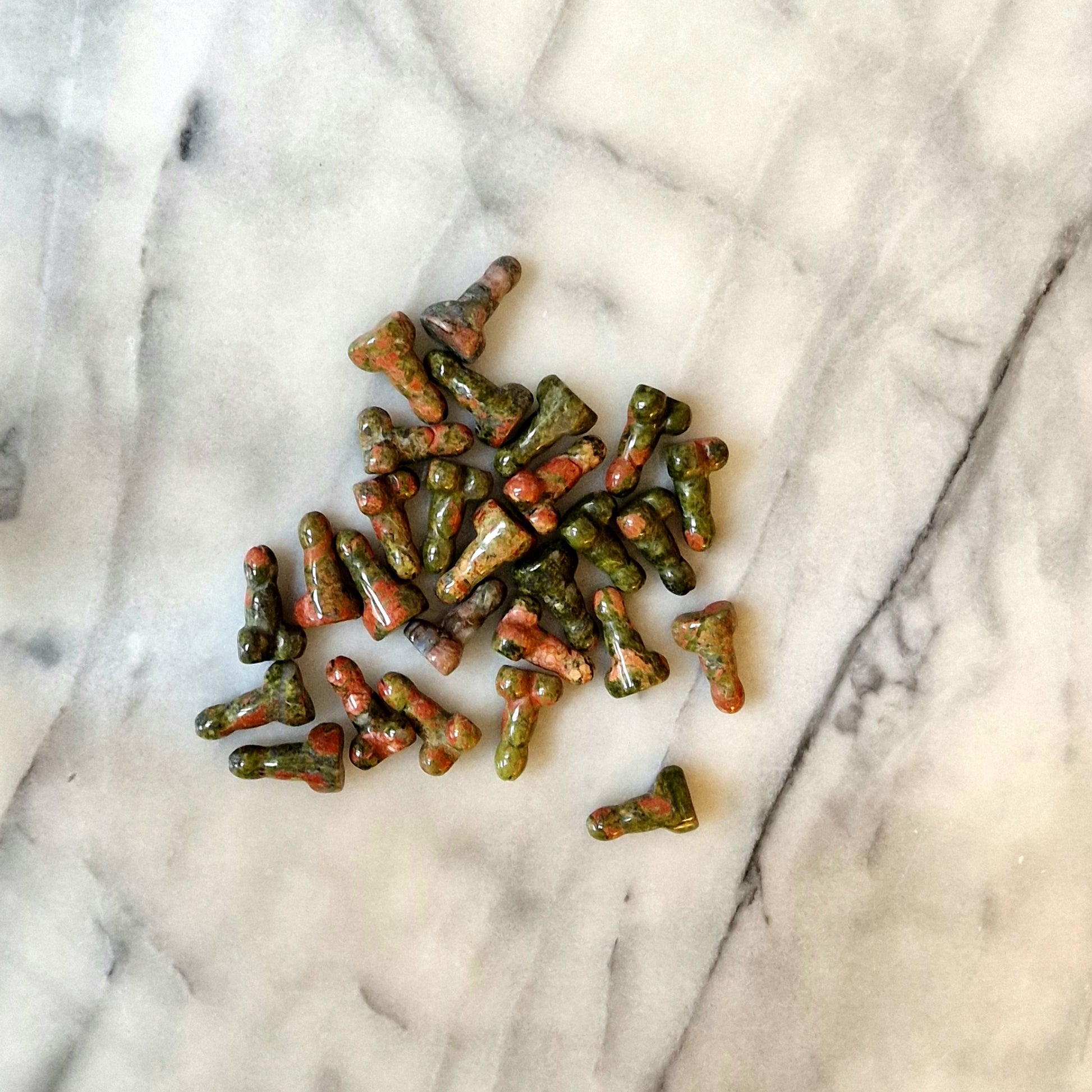 Unakit - Das Grün im Stein bringt beruhigende Vitalität und das Rosa bringt Zuneigung und Empathie.