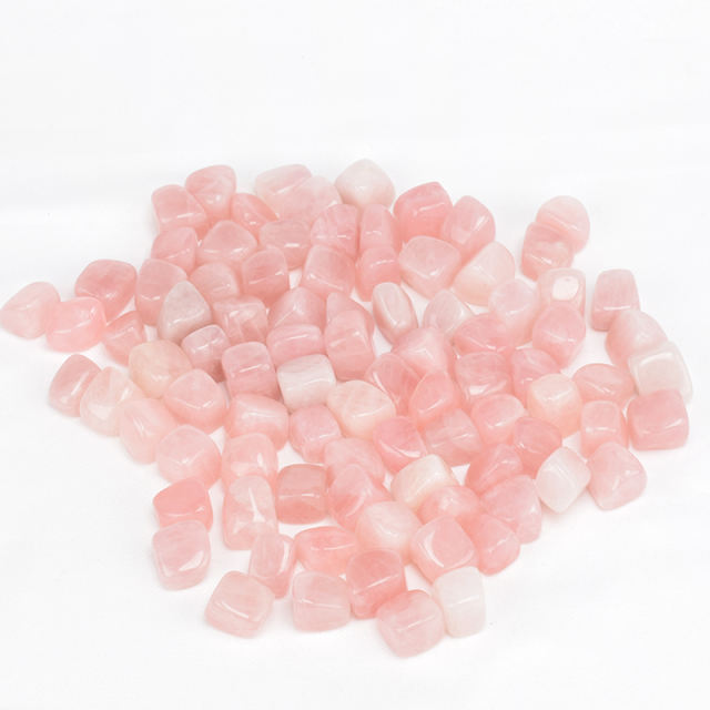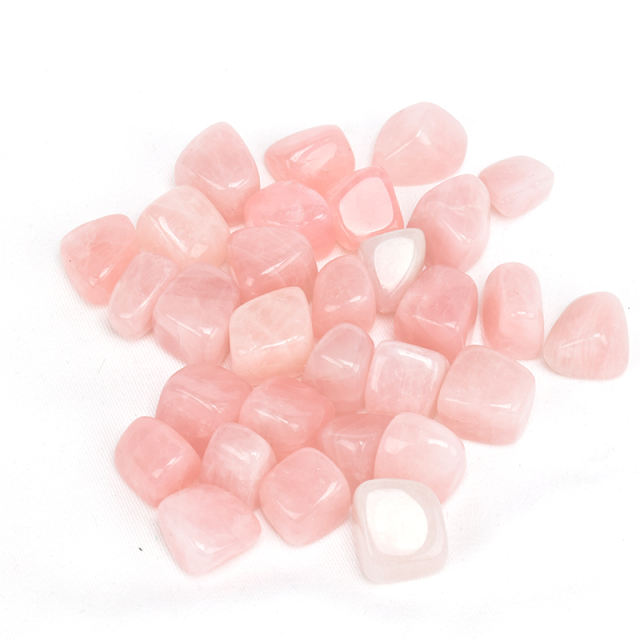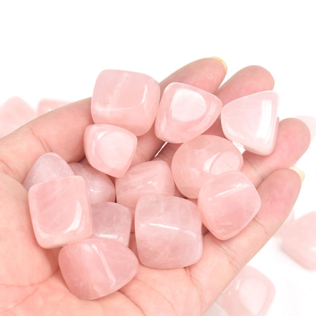 Getrommelter Rosenquarzkristall. Rosenquarz-Edelstein.