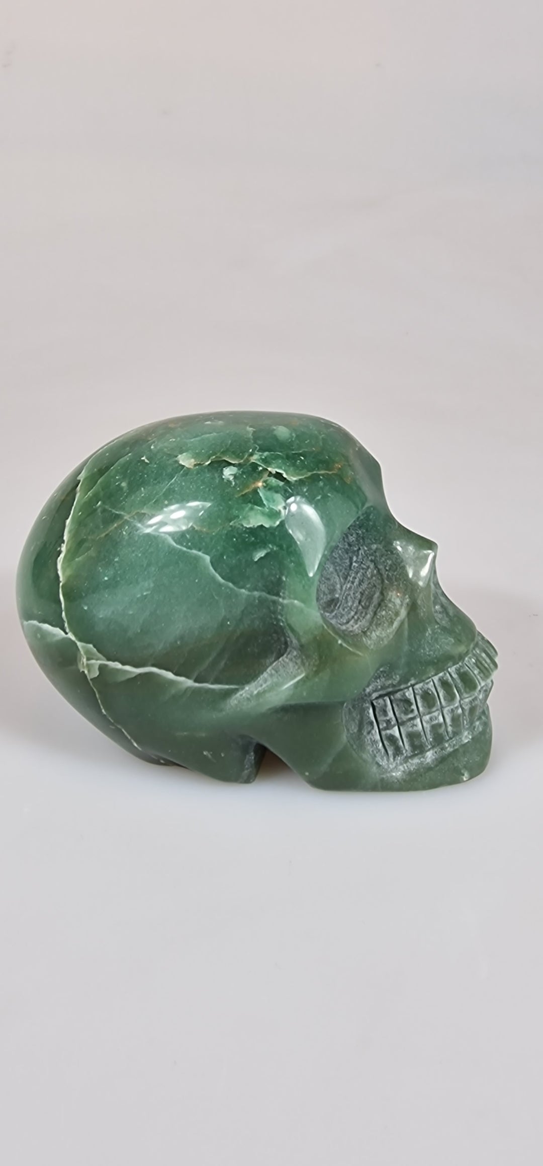 Grüner Aventurin-Kristallschädel. Grüner Aventurin-Edelsteinschädel.