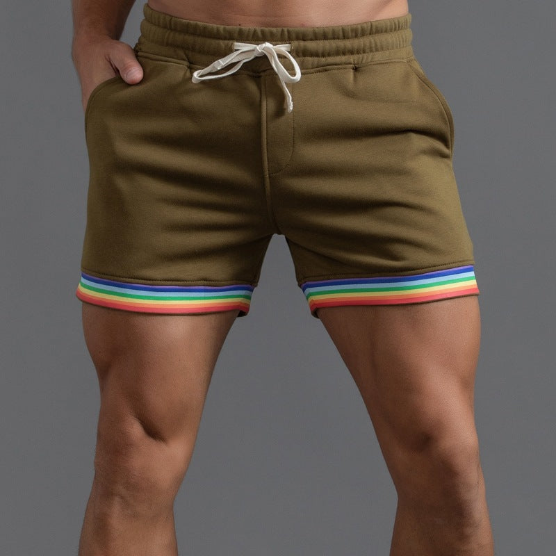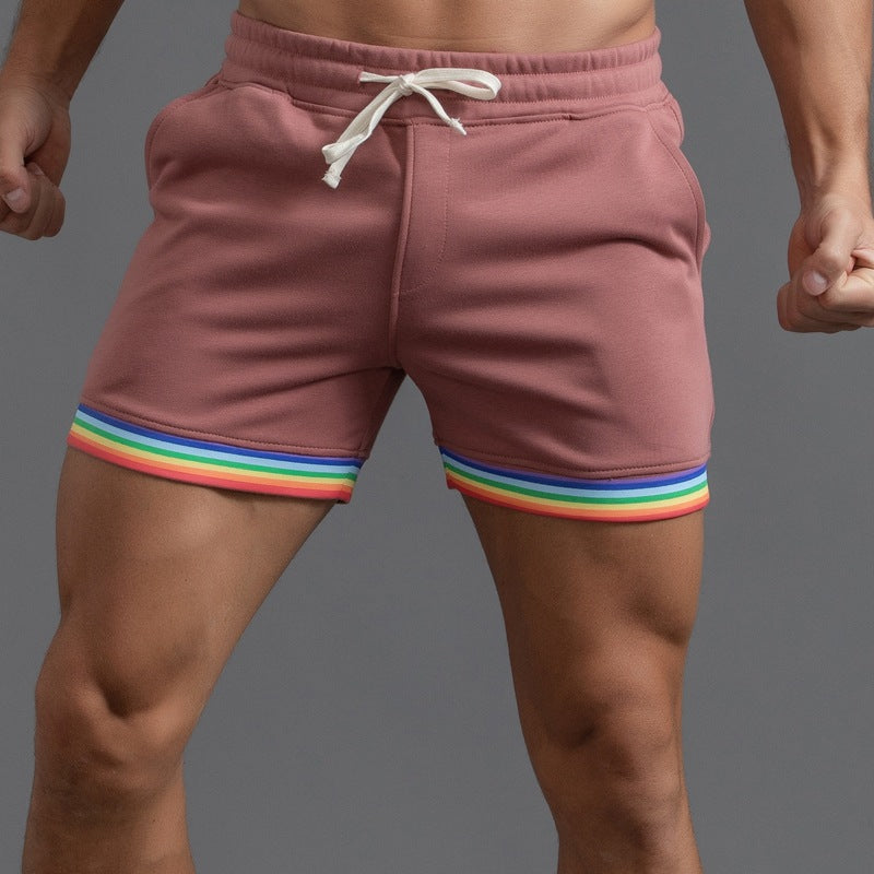 Stylish and comfortable shorts with bands around the legs in the colors of the rainbow. A pair of stylish pride shorts for both men and women. A pair of summer clothes or shorts suitable for the warm days of summer or as workout clothes.