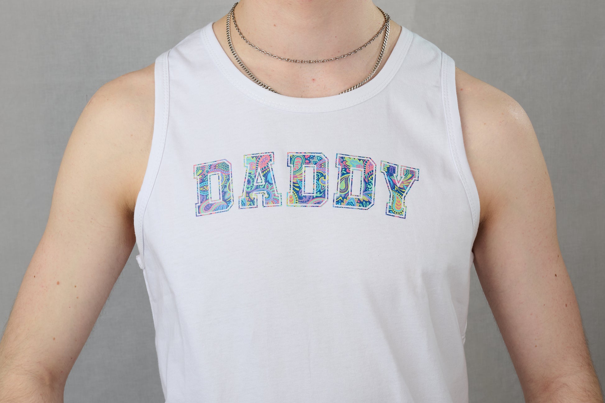 Dickfashion's new white tank top or tank top with the print DADDY.