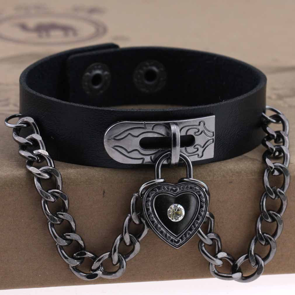 A stylish, black or red, sexy and unique leather bracelet with chains for both men and women, men and women, and of course everyone else. A bracelet that fits well with harness and fetish, BDSM and bondage. But also very stylish as an outfit and accessory for parties, clubs, and Halloween. A beautiful piece of jewelry that suits both suits, dresses, and costumes.