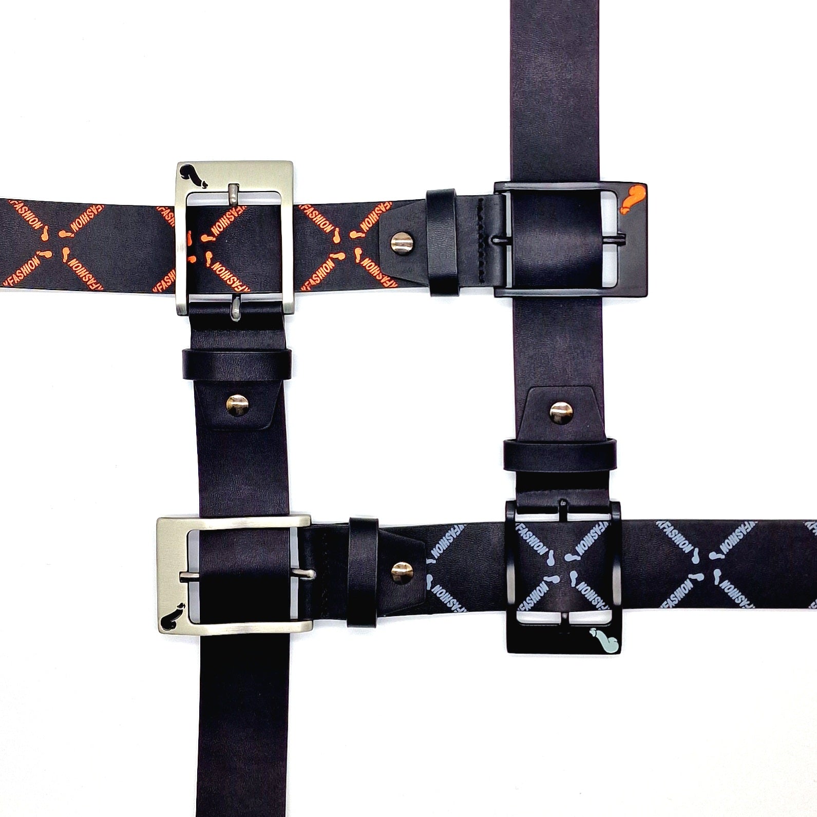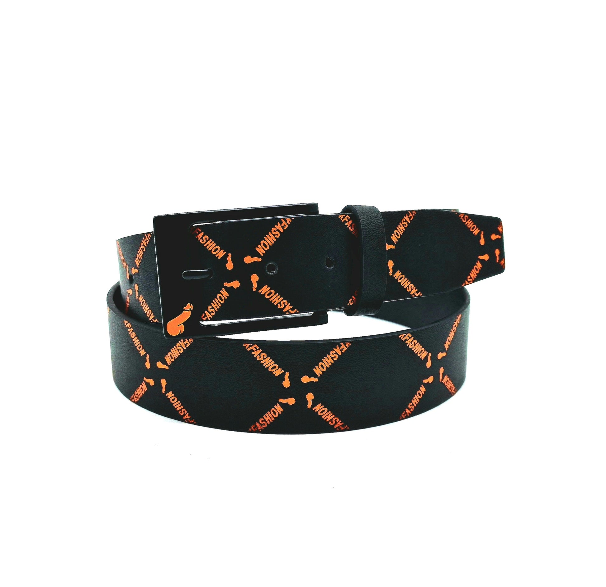 Dickfashion's black leather belt with orange pattern and metal buckle is more than just functional, it is also a great looking and good accessory for your outfit. Our belts come in different colors, variations and lengths, so if you want a really stylish accessory or just a clean look, there is absolutely something for both situations.