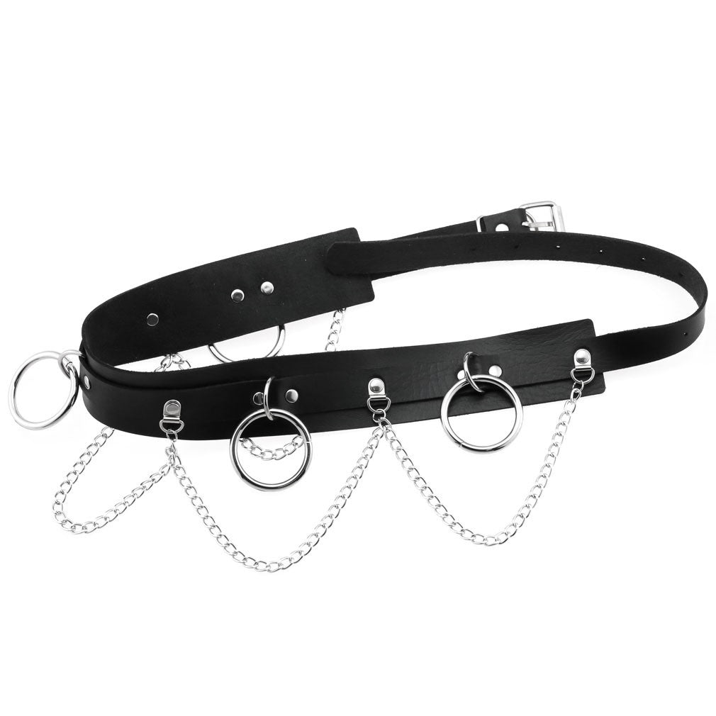 A stylish waist harness with many rings and chains over the hips. A unique women's and skirt harness that of course also fits men. A sexy black belt, strap, or harness that is perfect for fetish parties, the most fun clubs, or if you are going to a Halloween or decadence party.