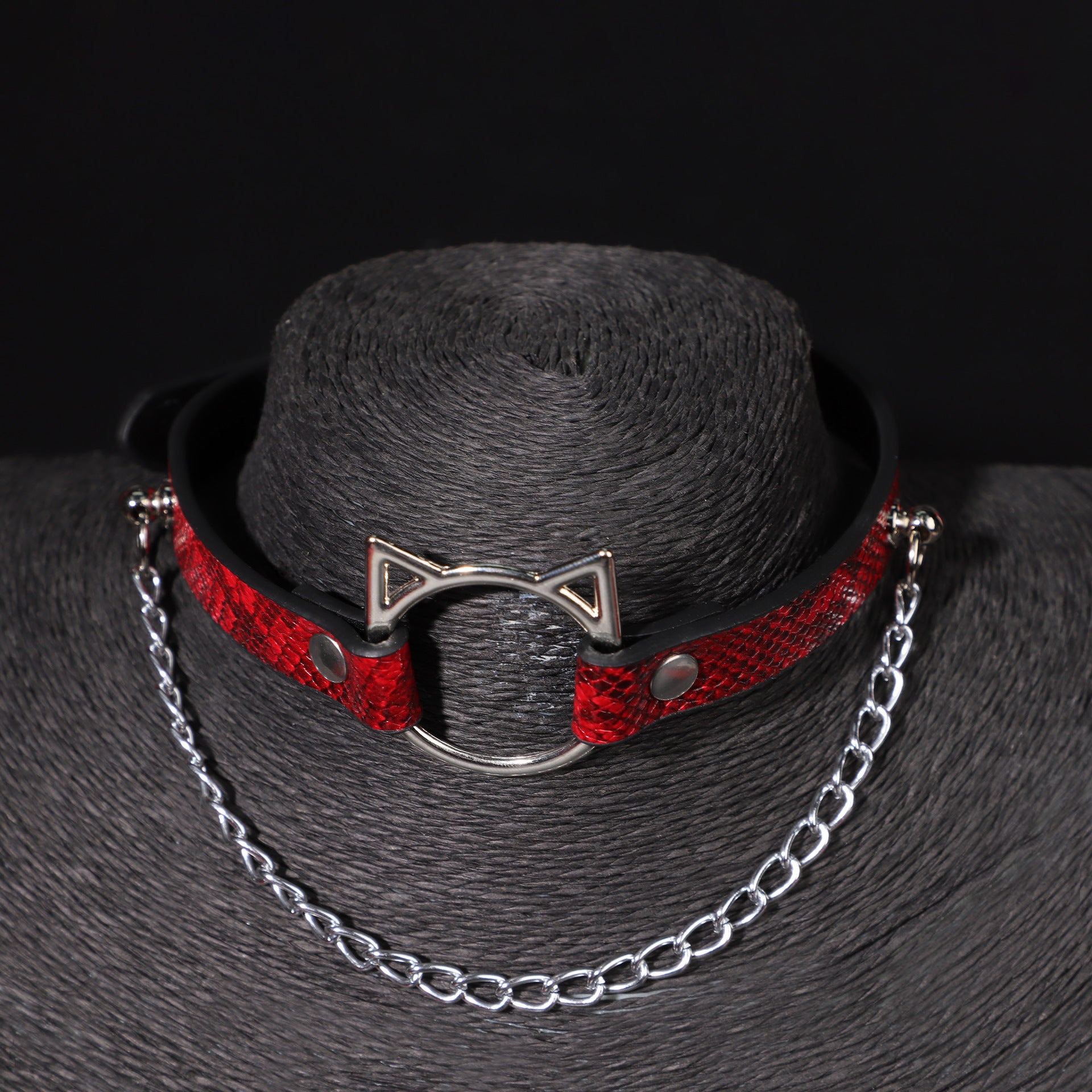 Denna röda choker i skinn är en trendig halsaccessoar designad för dig som vill skapa ett unikt kraftfullt modestatement. Visa din eviga kärlek eller visa att du redan är tagen av din stora kärlek.