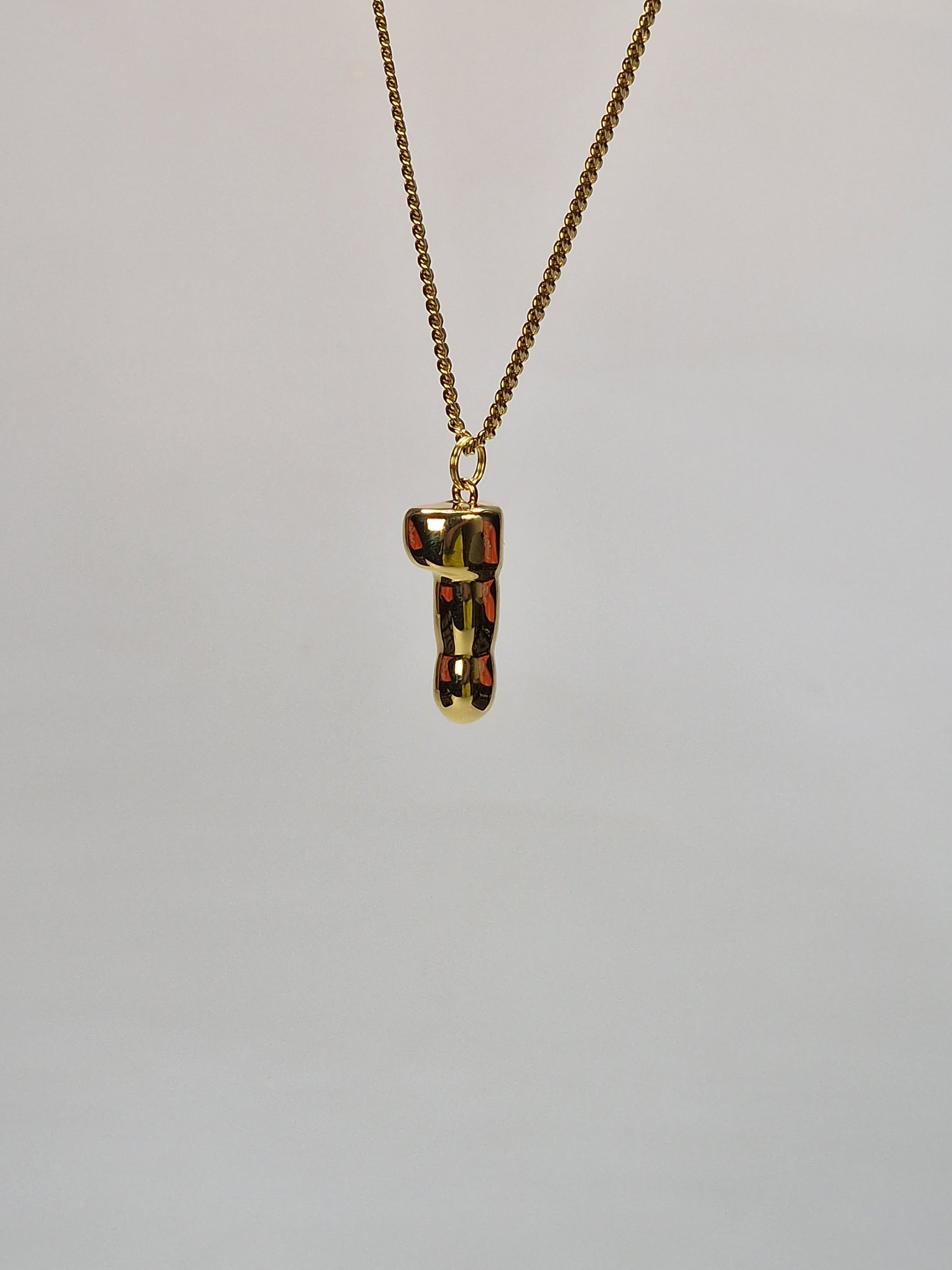 Un hermoso y único collar con una polla o pene dorado. Las joyas están diseñadas por Dickfashion y son completamente únicas. Un collar elegante que se adapta tanto a hombres como a mujeres.