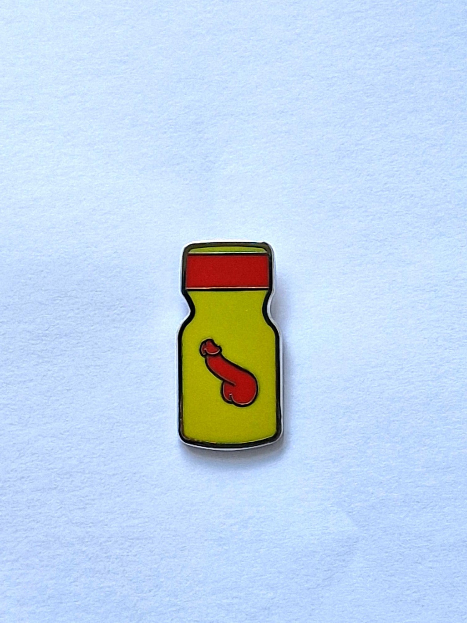 Pin de poppers divertido y gay, una pequeña botella de poppers con polla