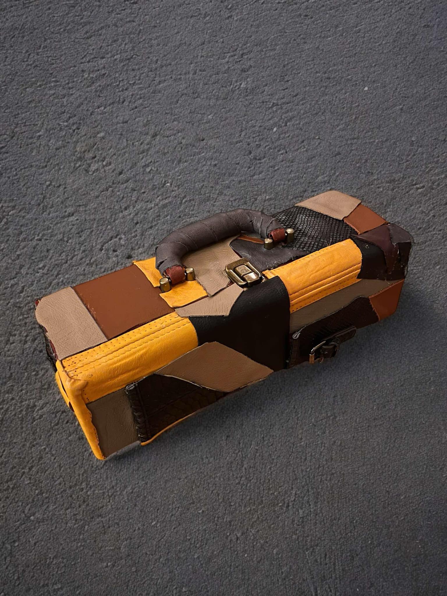 Este es un bolso de forma diferente en cuero negro. Un maletín que puedes usar para muchas cosas, como bolso de trabajo, bolso de fiesta o como un accesorio divertido gótico o steampunk. El bolso es igual de adecuado para dama, caballero, chicos o chicas.