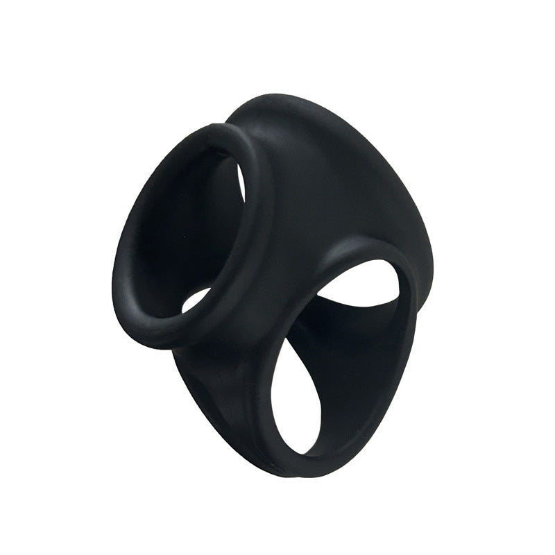 Denna kukring är i mjuk silikon med fyra olika hål, en runt roten, en runt skaftet på penis och en för varje testikel. Det är en trippel penis och testikel ring. En ring för penis, två för testiklarna och en för hela paketet. Mjukt och elastiskt gummi gör att denna kukring är säker och enkel att få på och av och då den är i gummi så kommer den att ge dig ett stenhårt stånd eller erektion. Detta är en pubisring av det lite mer avancerade slaget, den passar de flesta storlekar då den är gjord av elastiskt silikon.