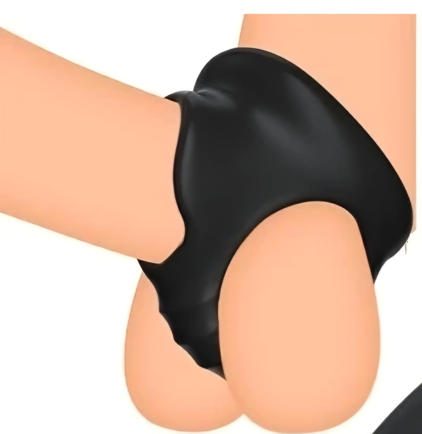 Kukring, pubisring eller penisring i mycket mjuk silikon. Trippel Cage cock and ball spreader.