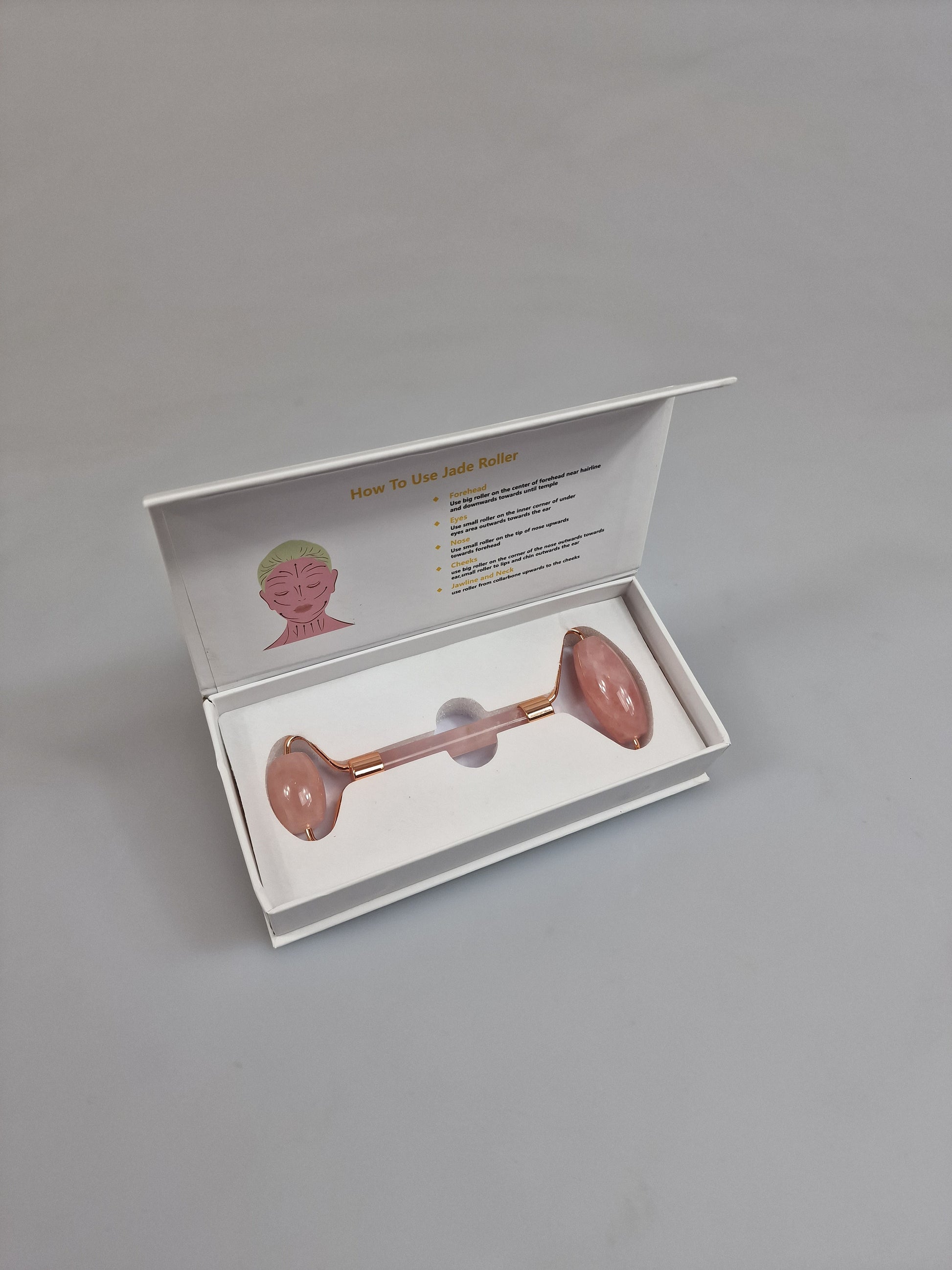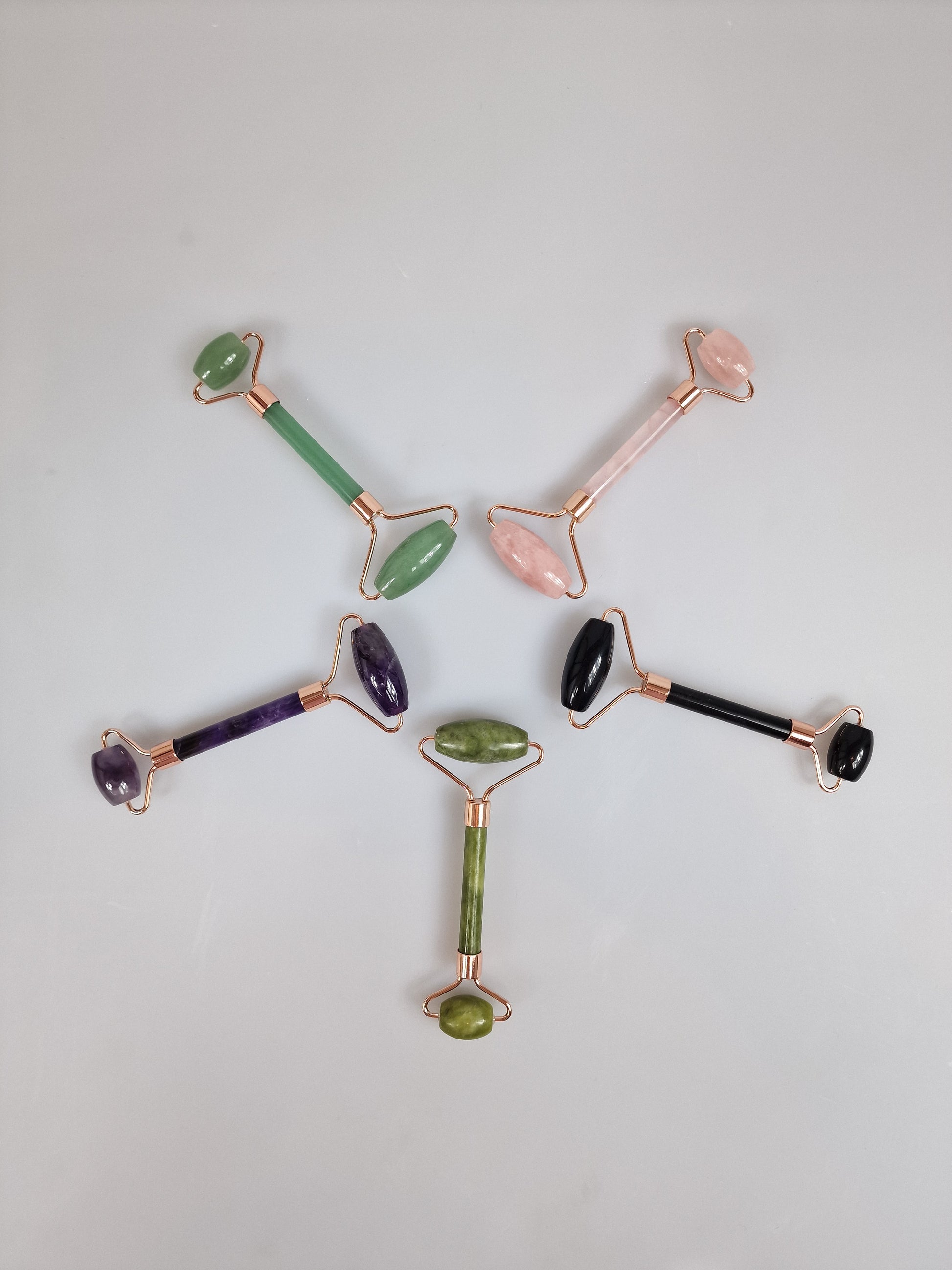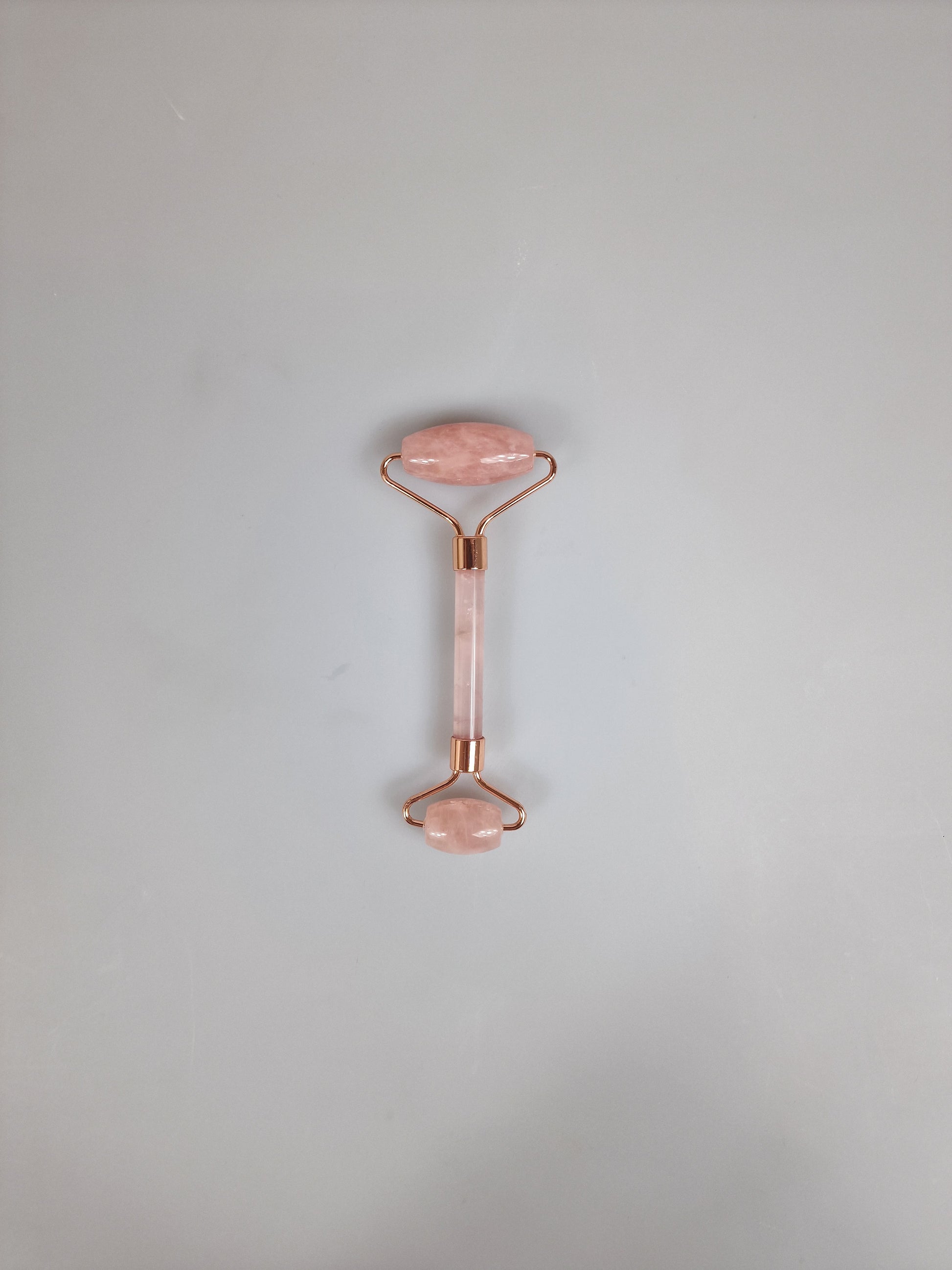 Rodillo facial Rose Quarts gua sha jade o rodillos faciales en cuarzo rosa.