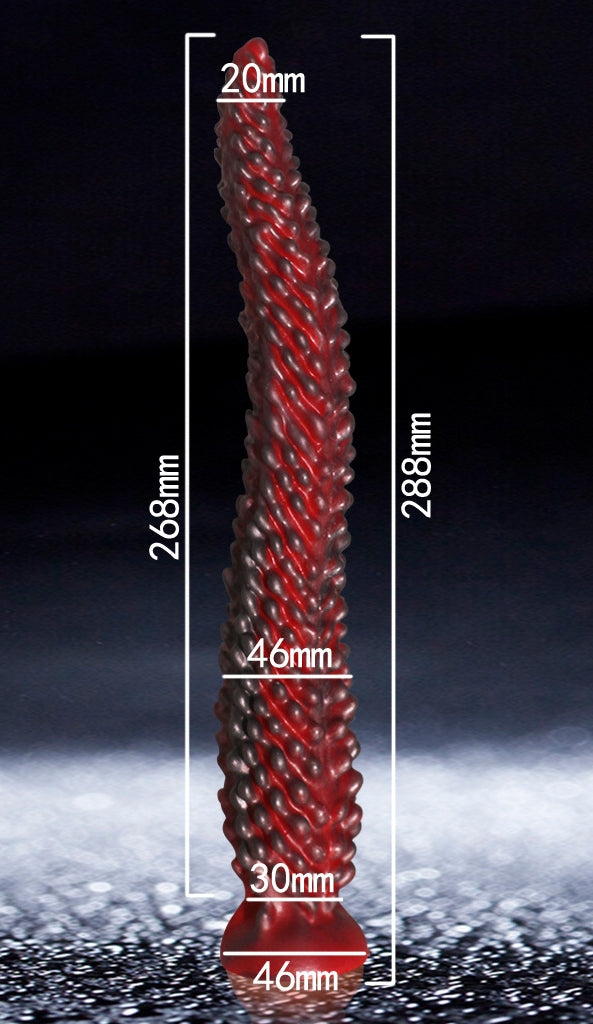En unik, lång och flexibel mönstrad dildo. Denna sexleksak är knottrig och i mjuk silikon och är skapad för att du ska känna varje centimeter av den för maximal njutning. Detta är en typ modell av tentacle dildo eller monster, dragon dildo