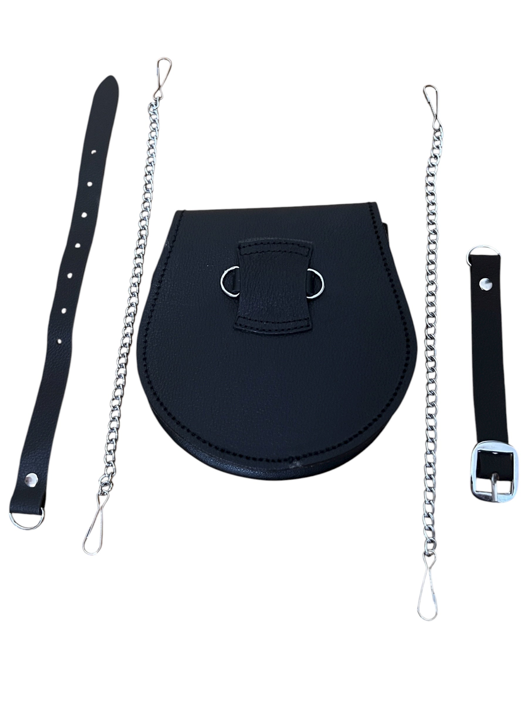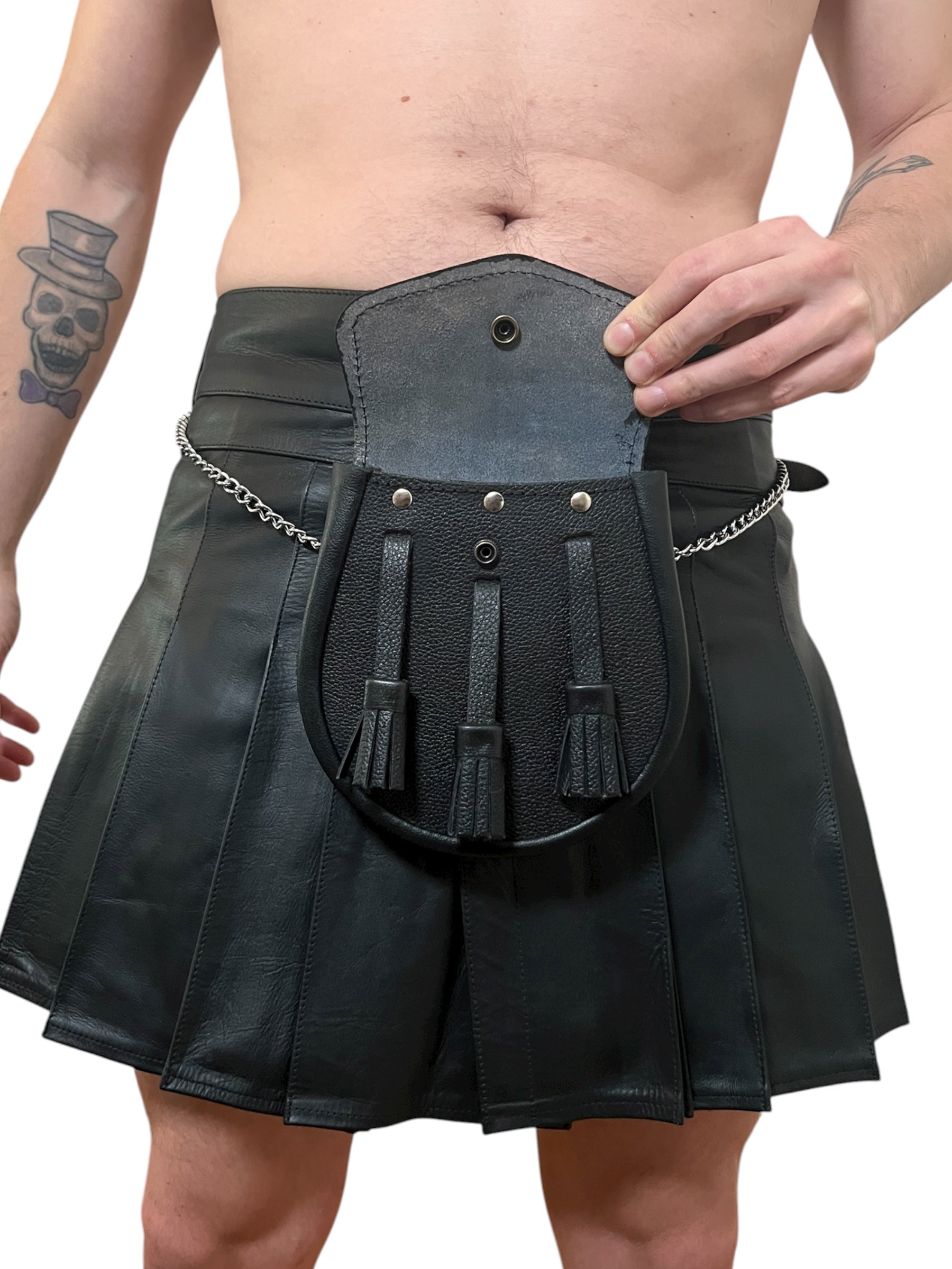 Läderväska för kilt i svart äkta skinn, BDSM och gay