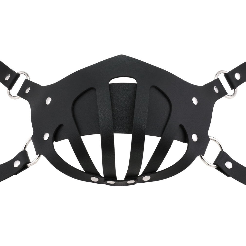 En snygg svart ansiktsmask eller munkorg för människor i läder. En unik accessoar. Denna mask är i skinn för dam som självklart även passar herr. En sexig mask som passar perfekt till fetishfester, de roligaste klubbarna eller om du ska gå på halloween eller dekadance fest. En prisvärd och billig ansiktsmask, du får mycket för pengarna.