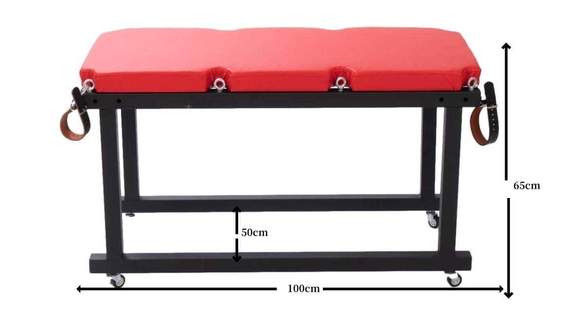 En stabil bänk för spännande BDSM lekar. Bänken har många fästen för rep eller krokar för bondage. Den går lätt att montera ner och förvara i garderoben eller under sängen. Benen monteras lätt av.