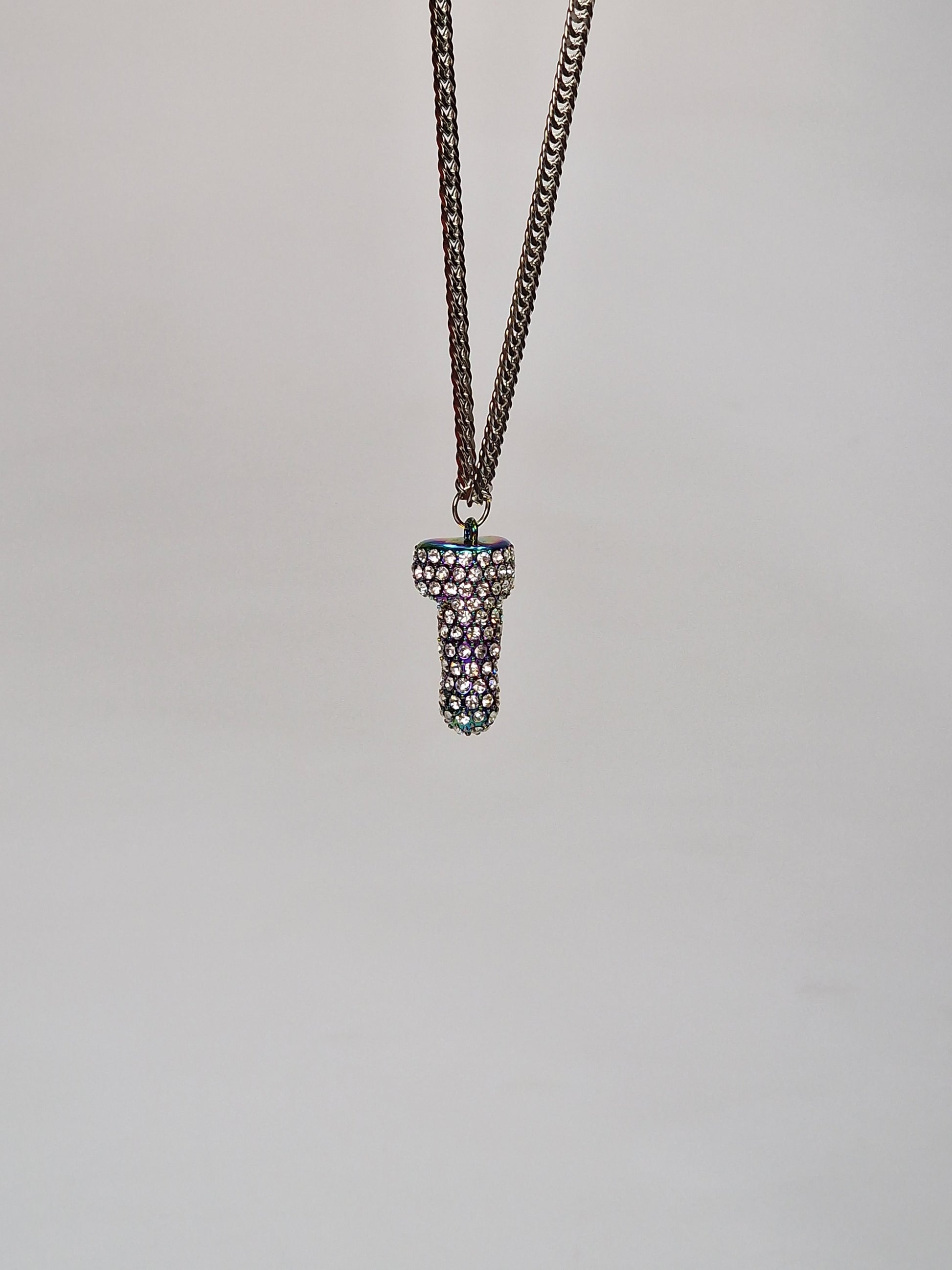 Ett unikt halsband designat av Dickfashion och därför finns bara ett fåtal. Ett vackert halsband i multicolor metall med ett hänge i form av en snopp eller penis och helt täckt av kristaller. Innehåller ej nickel