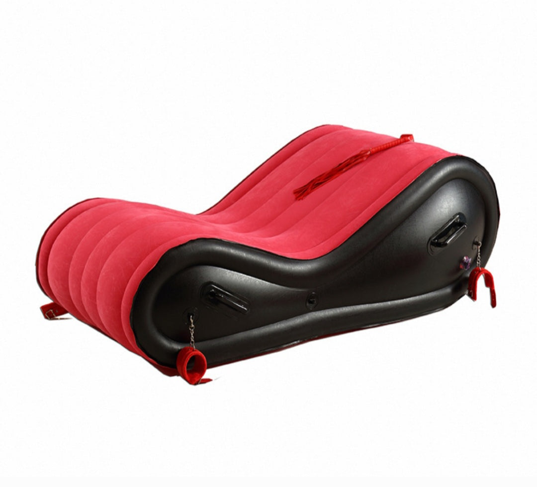 En uppblåsbar positionskudde med handledsmanchetter och ankelmanchetter för bättre sex och erotik. En sexmöbel som hjälper att få bättre sexställningar. Denna kudde gör att båda parter kan slappna av och njuta mer. En fantastisk möbel för sköna erotiklekar och fetisch fester. Pump ingår.