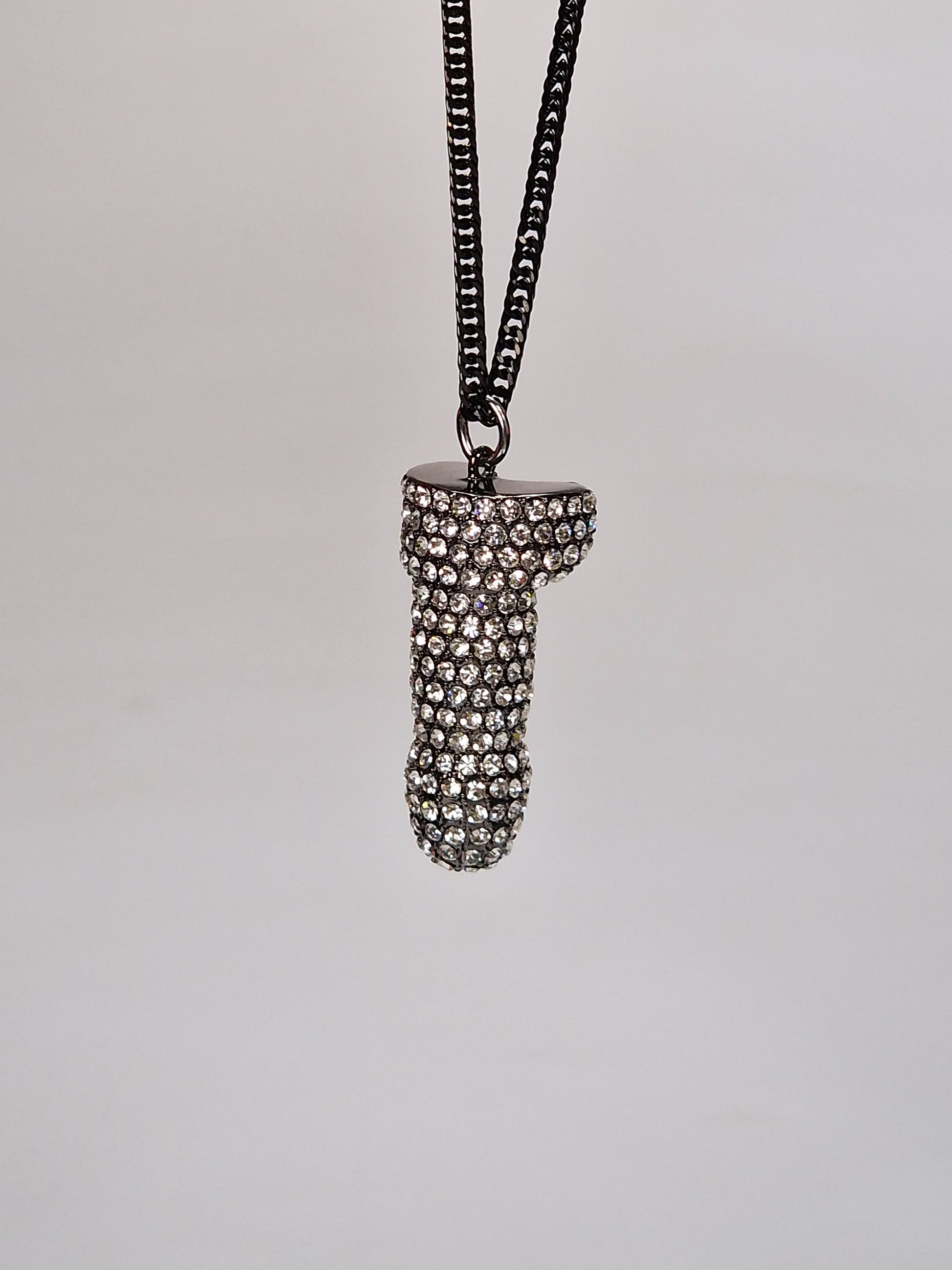 Halsband. Svart metall med swarovski kristaller - Halsband 5cm hängsmycke