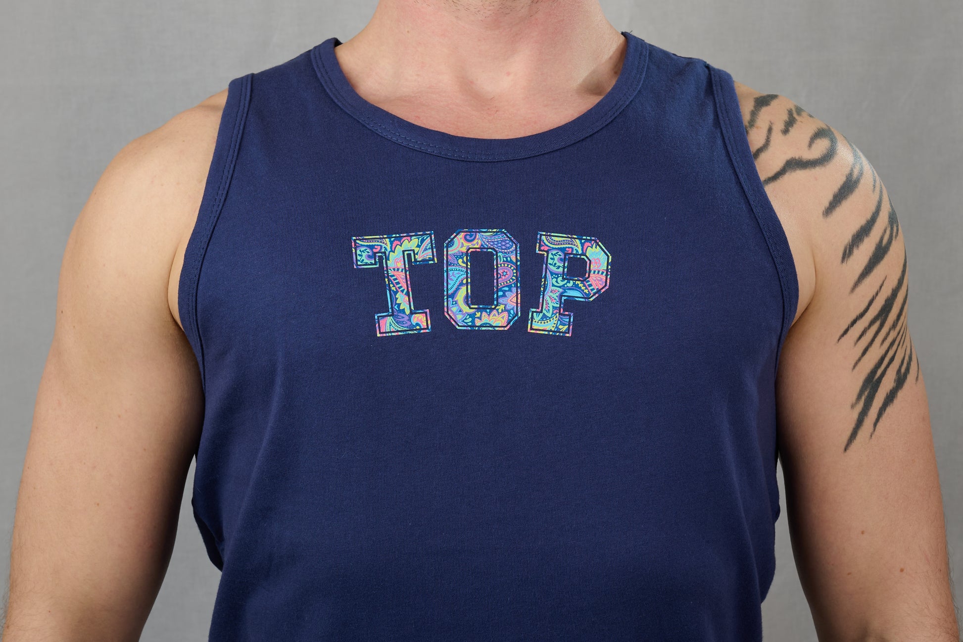 Dickfashions nya marinblå linne eller tanktop med trycket TOP.